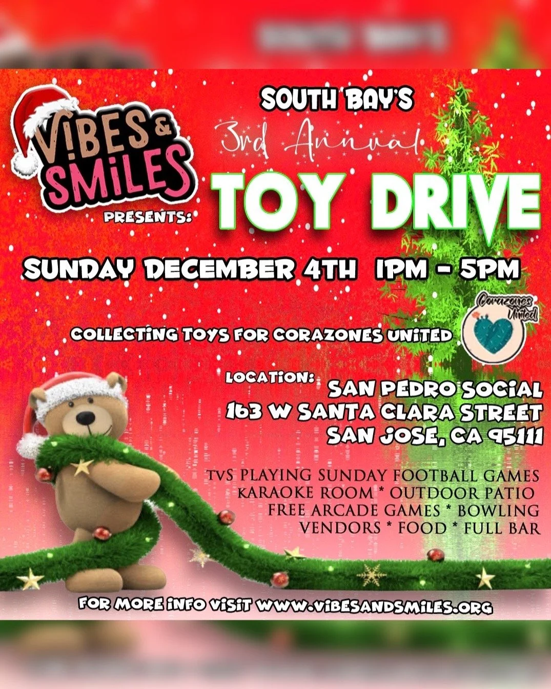 3rd Annual South Bay Toy Drive Sunday, December 4, 2022 1:00 PM 5:00 PM San Pedro Social 163 West Santa Clara Street San Jose, CA, 95113 United States (map) Google Calendar ICS